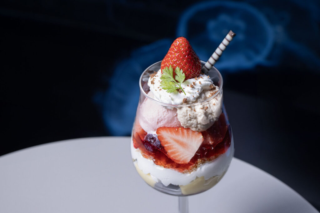 内容 :AOAO SAPPORO夜の定番メニュー「季節のシメパフェに夏の新商品が登場。夏にかけて旬を迎えるブルーベリーと、フレッシュな苺、さらにプリンを加えて親しみやすい味になっています。札幌発祥の夜の文化「シメパフェ」とともに、ペンギンたちの観察をお楽しみください。