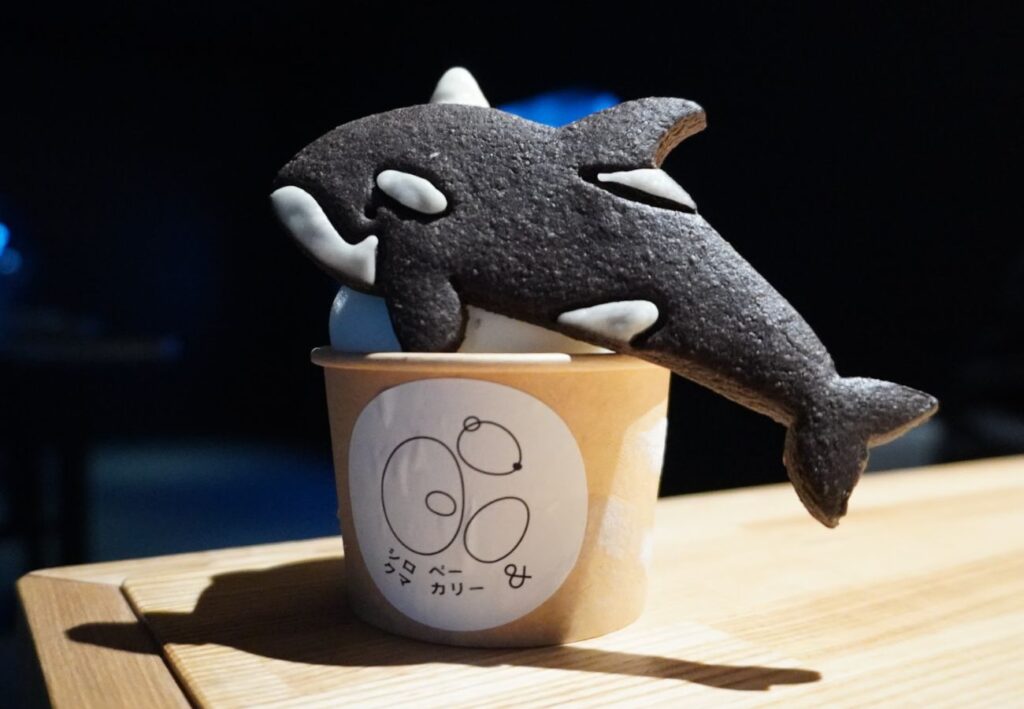 内容  :「北海道北広牧場のソフトクリーム」に、斜里町ウトロのカフェ「cake&cafe APU」で販売されている知床のシャチサブレを添えた、「知床を感じる日」限定メニューです。