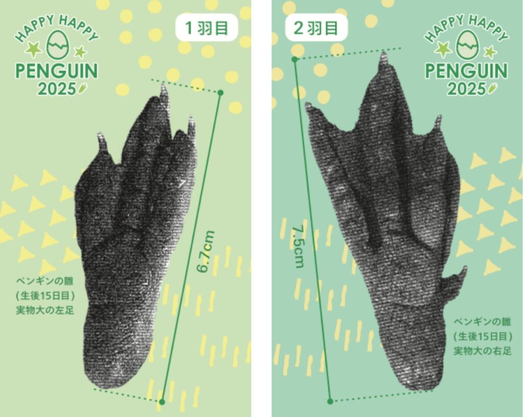 開催内容:⽣後 15 ⽇⽬の雛の⾜を撮影し、ほぼ等⾝⼤で掲載したオリジナルカードを来館者全員に配布します。カードの裏には⽇々愛情を持って飼育している⽣物担当スタッフによる 2 ⽻それぞれの様⼦の解説を記載しています。
