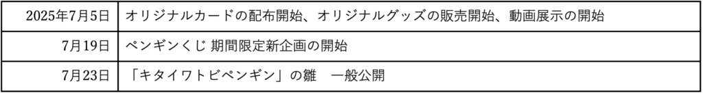 また、ペンギンの誕⽣を祝い、来館者のみなさまと⼀緒に雛の成⻑を⾒守っていくイベント「ハッピーハッピーペンギン 2025」を7⽉5⽇(⼟)から開催します。