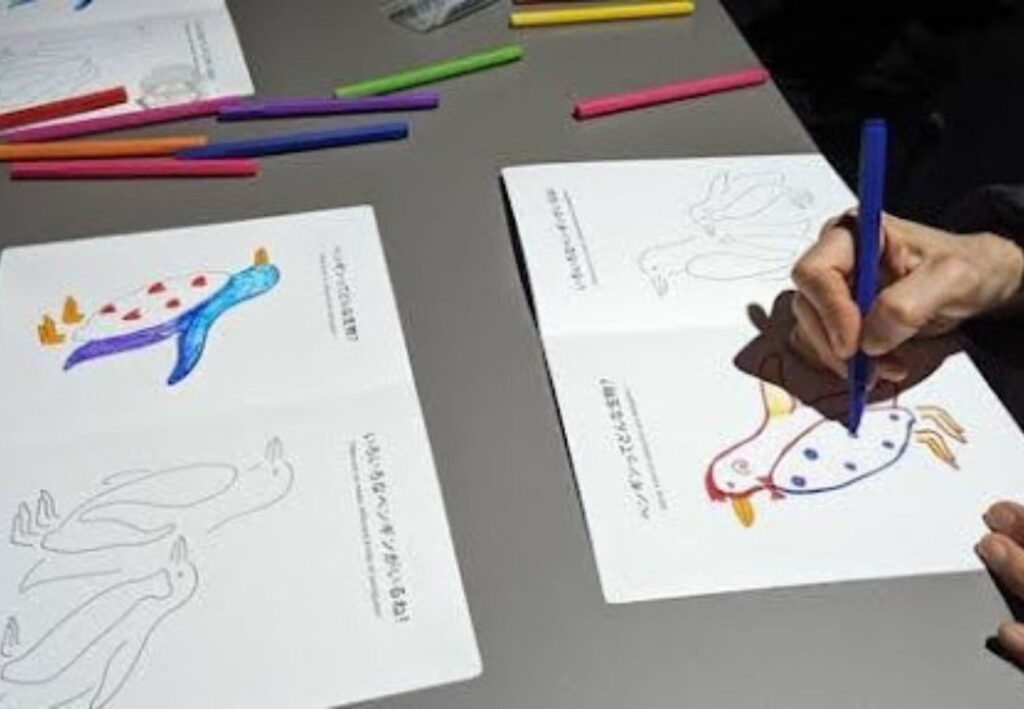 ヒレの役割を魚類学の視点から学ぶだけでなく、世界最古の魚の図鑑を通して想像力を広げ、ヒレの多様性に対する理解を深めた上で「ヒレうちわ」の制作体験を行いました。「ヒレうちわ」は魚のヒレの多様性や機能性、美しさに着目し、ヒレを新たな視点で捉えるオリジナルのアート作品です。