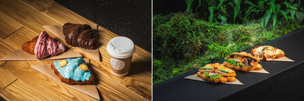 中でも注目は、新たな看板商品となる「あおあおクロワッサン」。既存メニューの「AOAOカフェオレ」にも使用されているブルーキュラソーシロップを使い、水族館らしい美しい青色に仕上げた、AOAO SAPPOROオリジナルの限定メニューです。