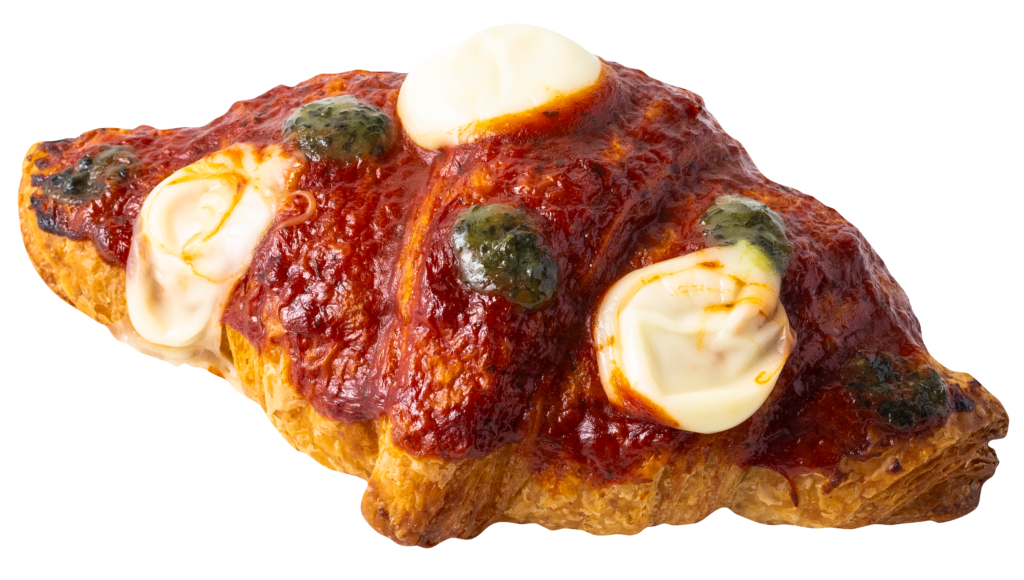 天然酵母クロワッサンにピザソースやモッツァレラなどをトッピングし、マルゲリータピザ風に仕上げました。