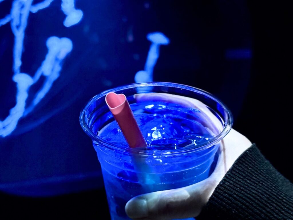 開催内容:ドリンクメニューを注文すると、ハート型のストローがついてきます。ハートあふれるドリンクを手に、生物たちの観察と水族館ならではの豊かな空間をお楽しみください。