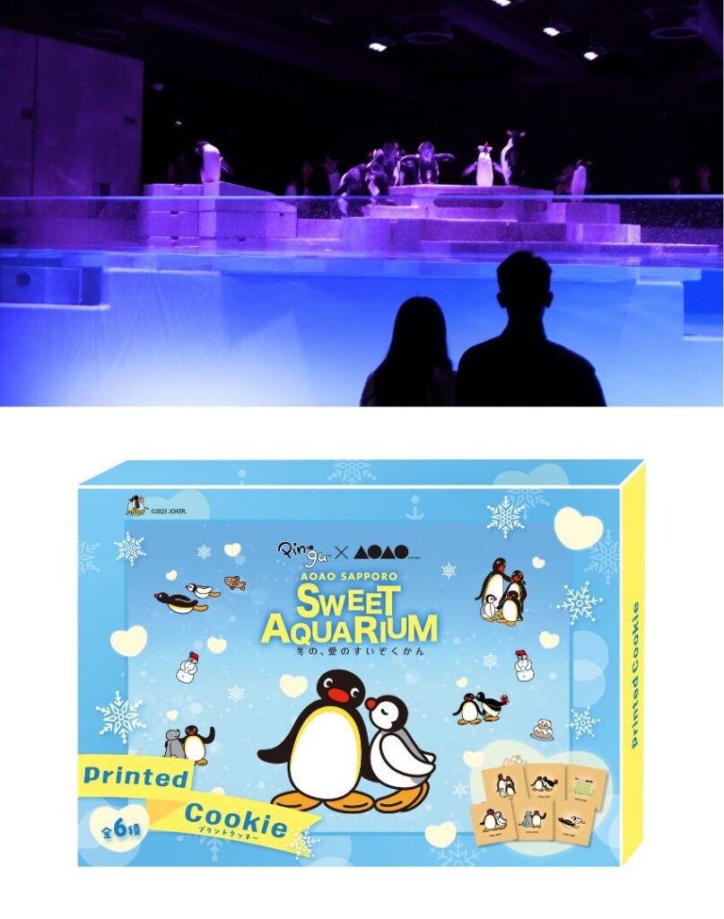 大切な人と、時間を過ごし、気持ちを分かち合うバレンタインやホワイトデーのお出かけにぴったりなAOAO SAPPOROでは、開催中の特別企画展「PINGU™×AOAO SAPPORO SWEET AQUARIUM 冬の、愛のすいぞくかん」を二人で満喫できる、入館チケットにスタンプラリーブック 1 冊と、ピングープリントクッキー1 箱がセットになったお得なペアチケットを新たに販売開始します。