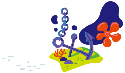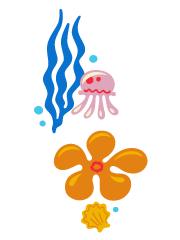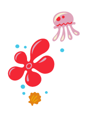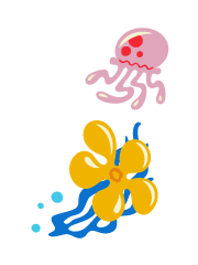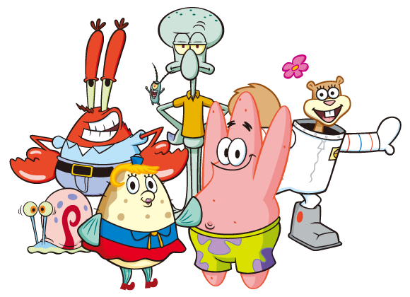 スポンジ・ボブのなかまたちと生物とのつながりを見てみよう。